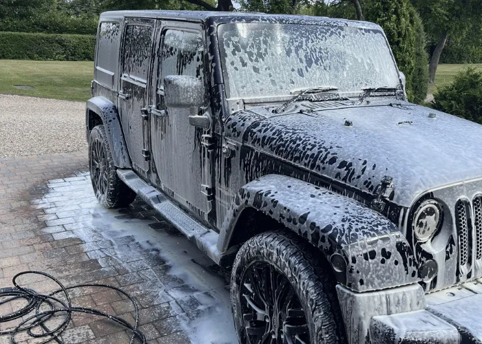 Our process begins the moment your vehicle arrives, with a complete chemical and physical decontamination. We start by cleaning the wheels first, giving attention to alloy wheels, arches, fuel cap, and door shuts. A citric degreaser is applied to break down grime, followed by snow foam to lift dirt, and a thorough rinse.